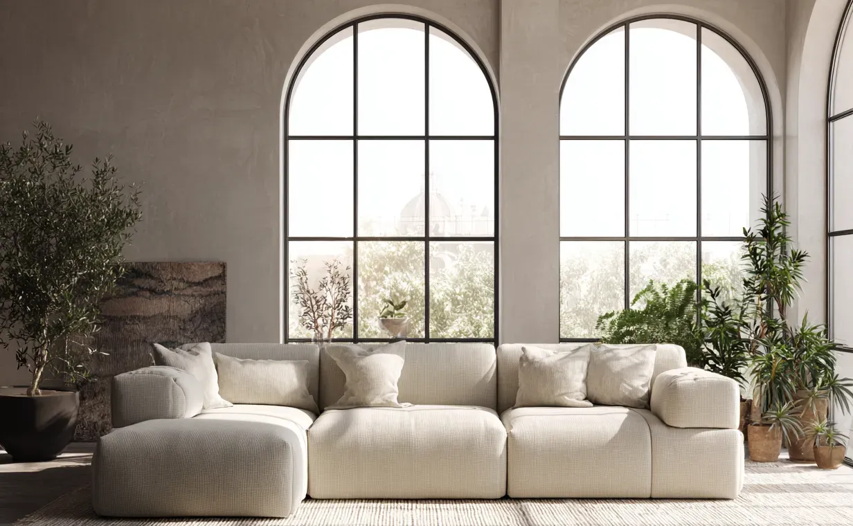 Canapé 3 places en tissu 230x95x80cm - beige - pour salon - design contemporain arrondi