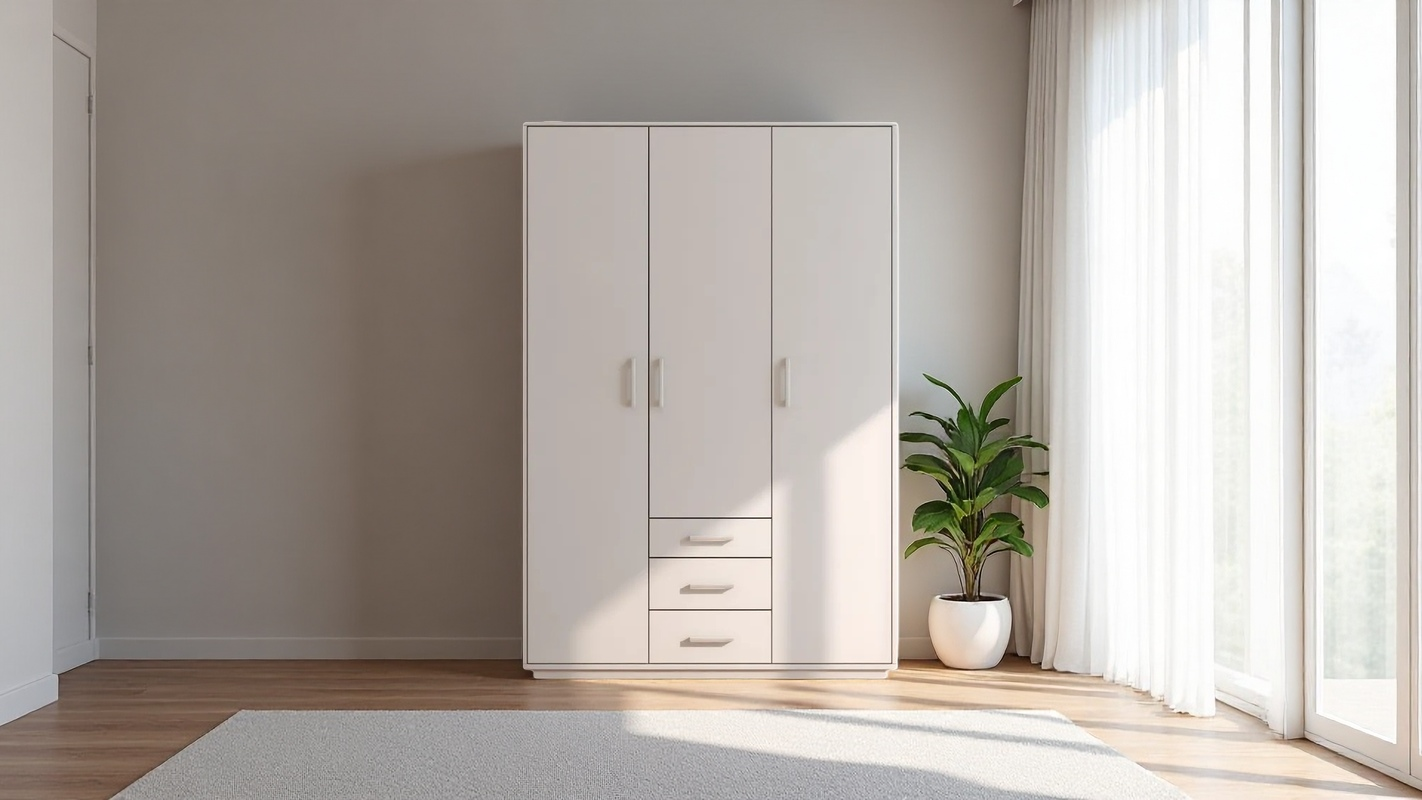 Armoire en bois 150x55x180cm - blanc - pour chambre - style épuré avec espace de rangement